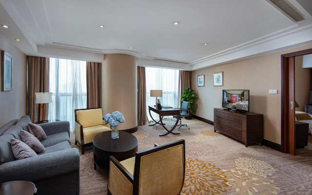 Songjiang New Century Grand Hotel Shanghai (Kaiyuan Mingdu Dajiudian) is situated in the new town of Songjiang, adjacent to the Central Park and Kaiyuan Square. Hongqiao Airport is only 20-minutes drive away and Pudong International Airport is 45 minutes away from the Songjiang New Century Grand Hotel Shanghai. The Happy Valley is also at hand.Various types of accommodation include standard rooms, deluxe rooms, business rooms, and deluxe suites. Chinese, Western, and Japanese cuisines can be enjoyed in its restaurant. Other facilities include banquet hall, multifunctional hall, fitness center, and business center.